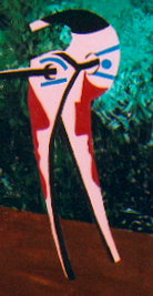 The surface markings on the Centaur are also repeated in new configurations from Centaur Painting 1 and appear as abstract shapes. The power of the human mind to read abstractions is evidenced in having an eye appear from several lines and a blue dot.