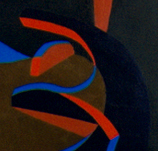 With this in mind, one might suspect that upon first glancing at this painting, the pink shape would jump off the canvas and be the obvious place to being looking. This may be so, and yet this painting has no cohesive single place from which to look to get a coherent view of the total image.